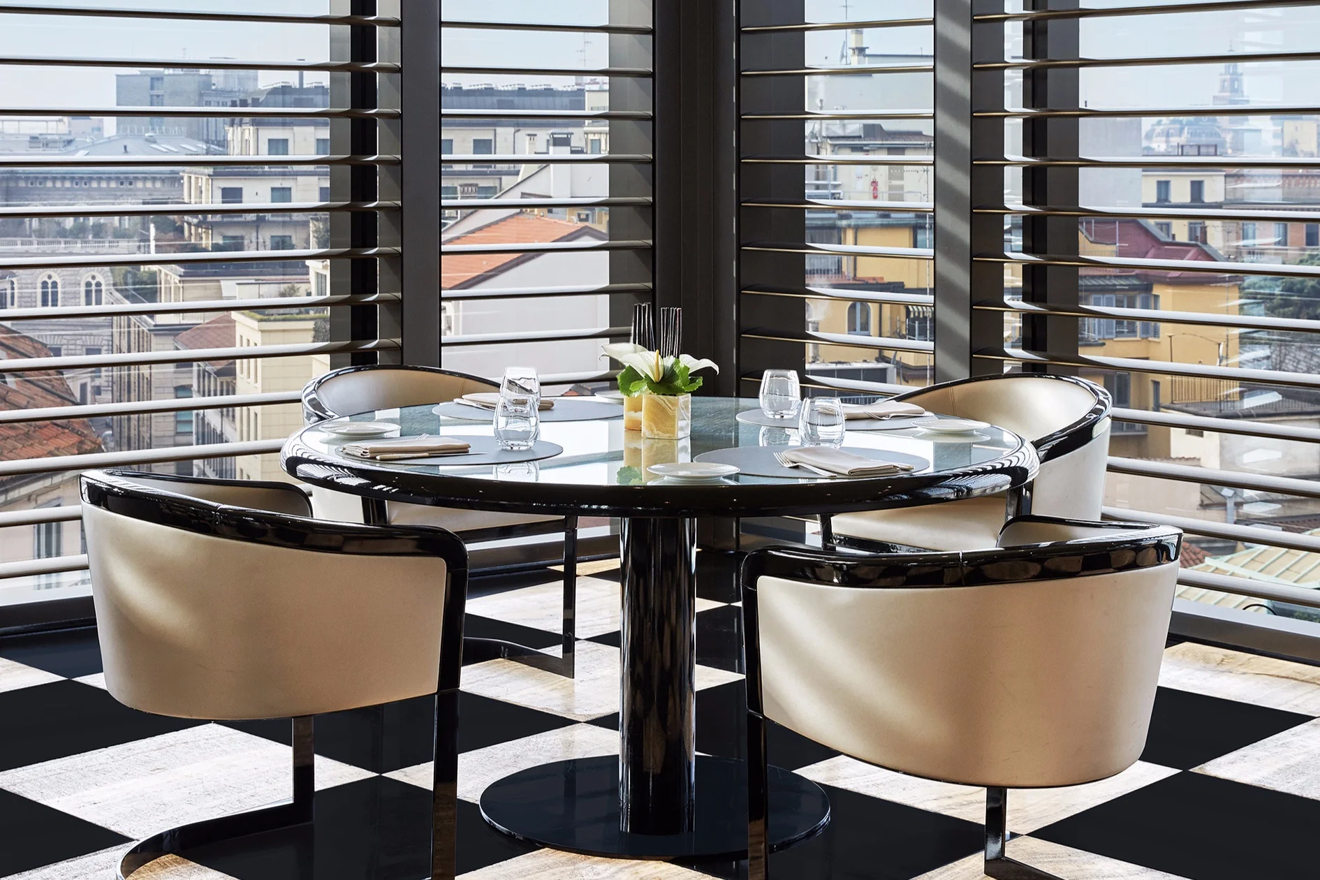 L’eccellenza e la tradizione dei sapori italiani si sposano tra echi di cucine internazionali, concretizzandosi in una proposta da assaporare a pochi passi dal Quadrilatero della Moda, al settimo piano dell’Armani Hotel Milano – con una vista mozzafiato sulla città e sul Duomo. Infine – in pieno stile Armani – per chi preferisce godersi una pausa in una atmosfera riservata ed esclusiva, l’Armani/Ristorante offre una sala per un pranzo in completa riservatezza ed intimità.